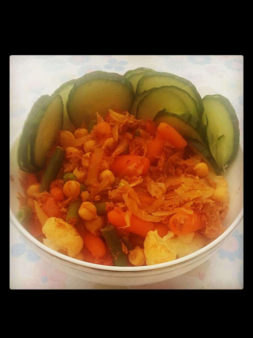 And tadaa! A quick healthy low calorie meal! Includes 5 a day. 3 here since i used a lot of veg. All this contains only 260 calories! Well 252 but i like to round things up!! Amazing right?