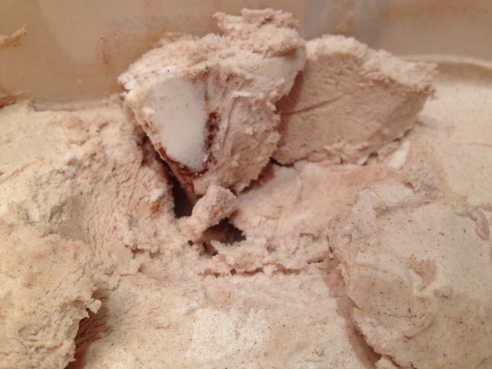 Add everything you like. It can be berries, chocolate, vanilla and etc. Also you can add sugar then your ice-cream will be more tasty. I added only cinnamon.