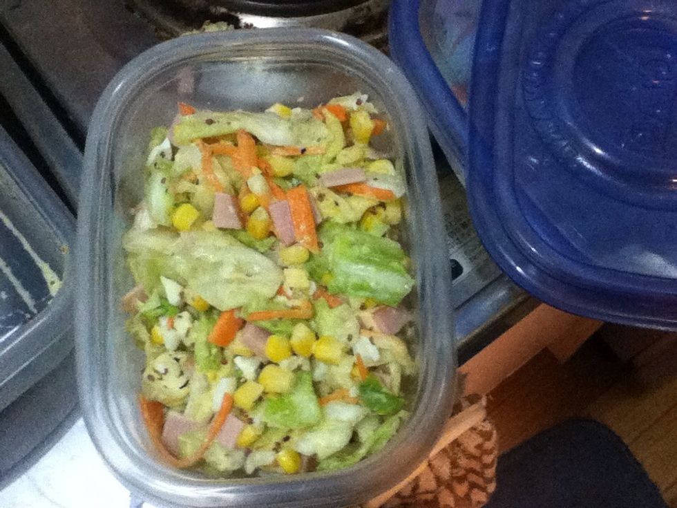 Add cheese...and mix well. Salt and pepper to taste. Sorry but I never measure so you can just mix and taste to see if you wanna add more mayo or mustard or honey. Adding some corn is also yummy!