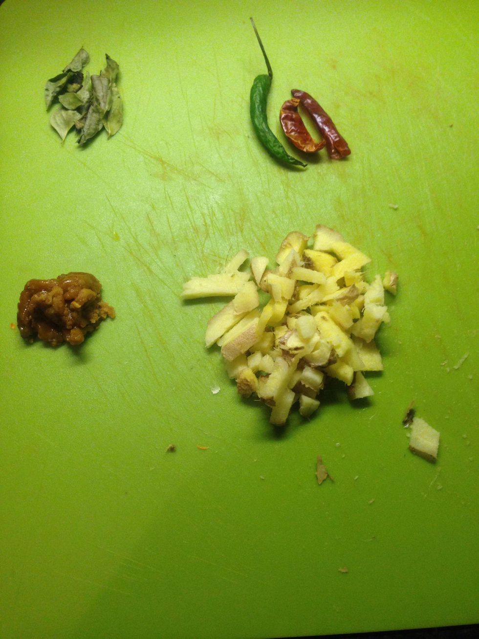 Fry ginger and chillies in oilPut fried ingredients into mixer and Add jaggery,Salt and grind.Add some water if requiredTamper curry leaves and mustard seeds.