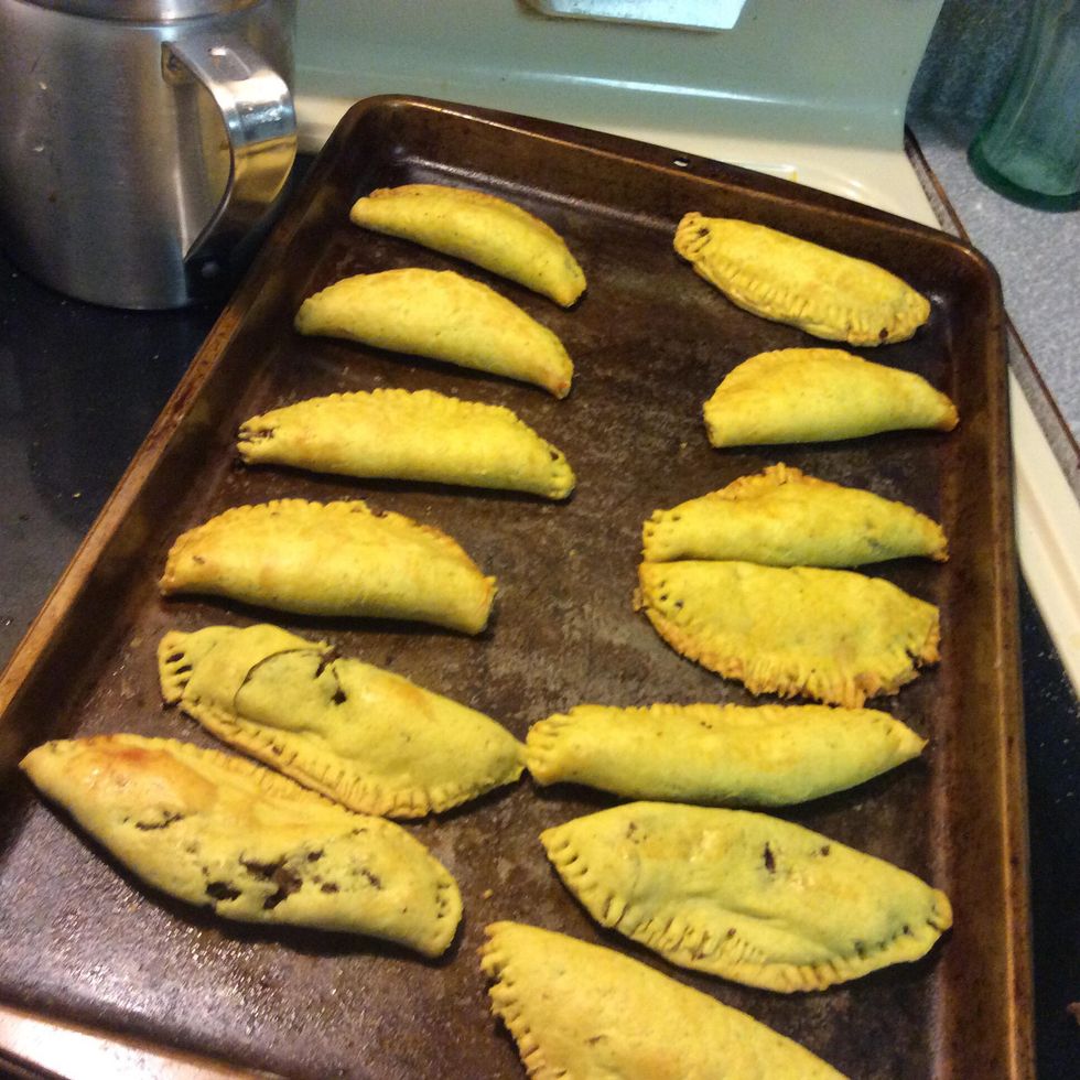 After rolling out the dough, cut out 6 inch circle, brush over them with the egg wash( 1 egg and 1/2 tablespoons of water mixed) and place your meat filling.
