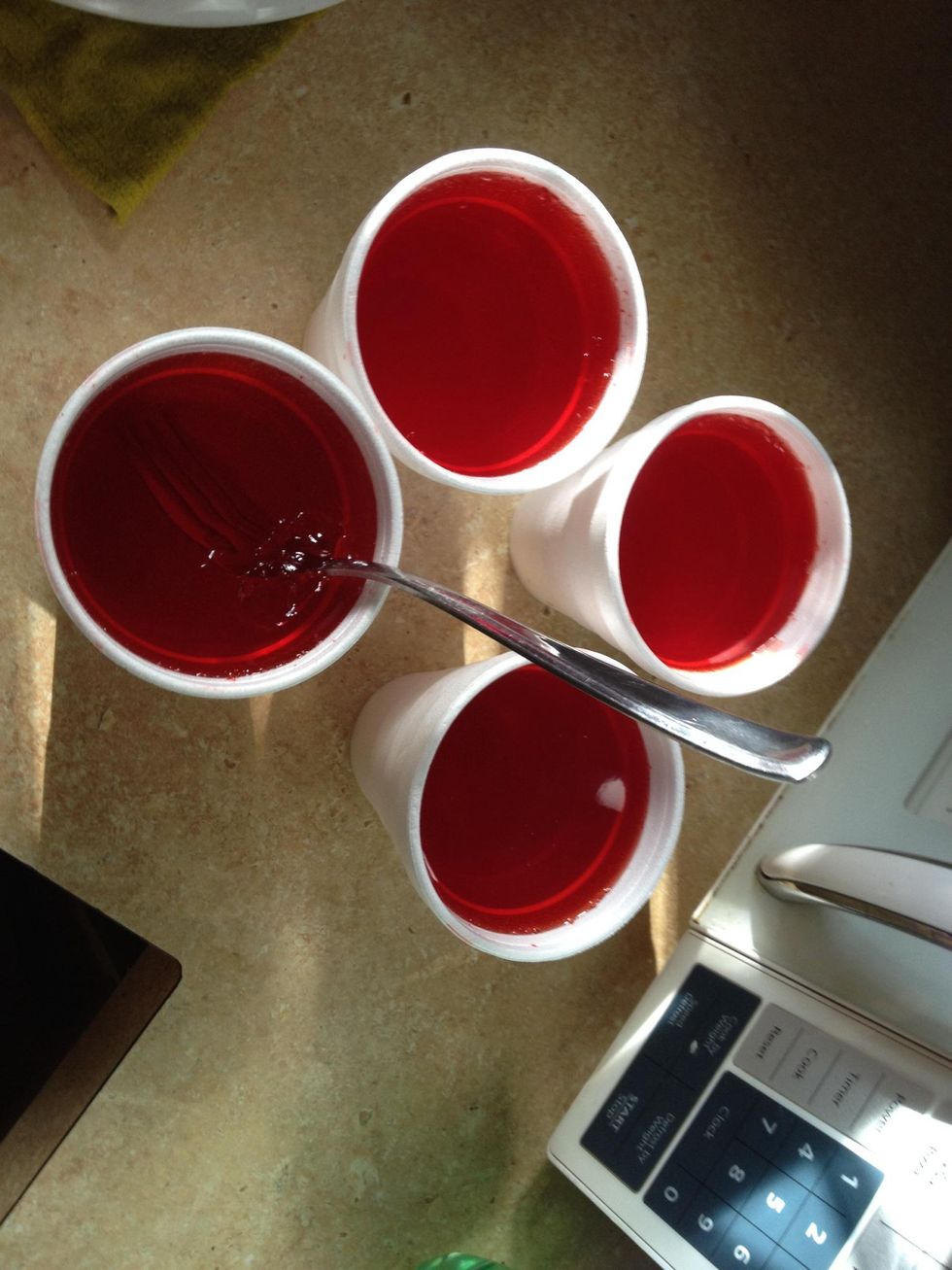 It is ready after about 14 hours or when a spoon is straight inside the jello