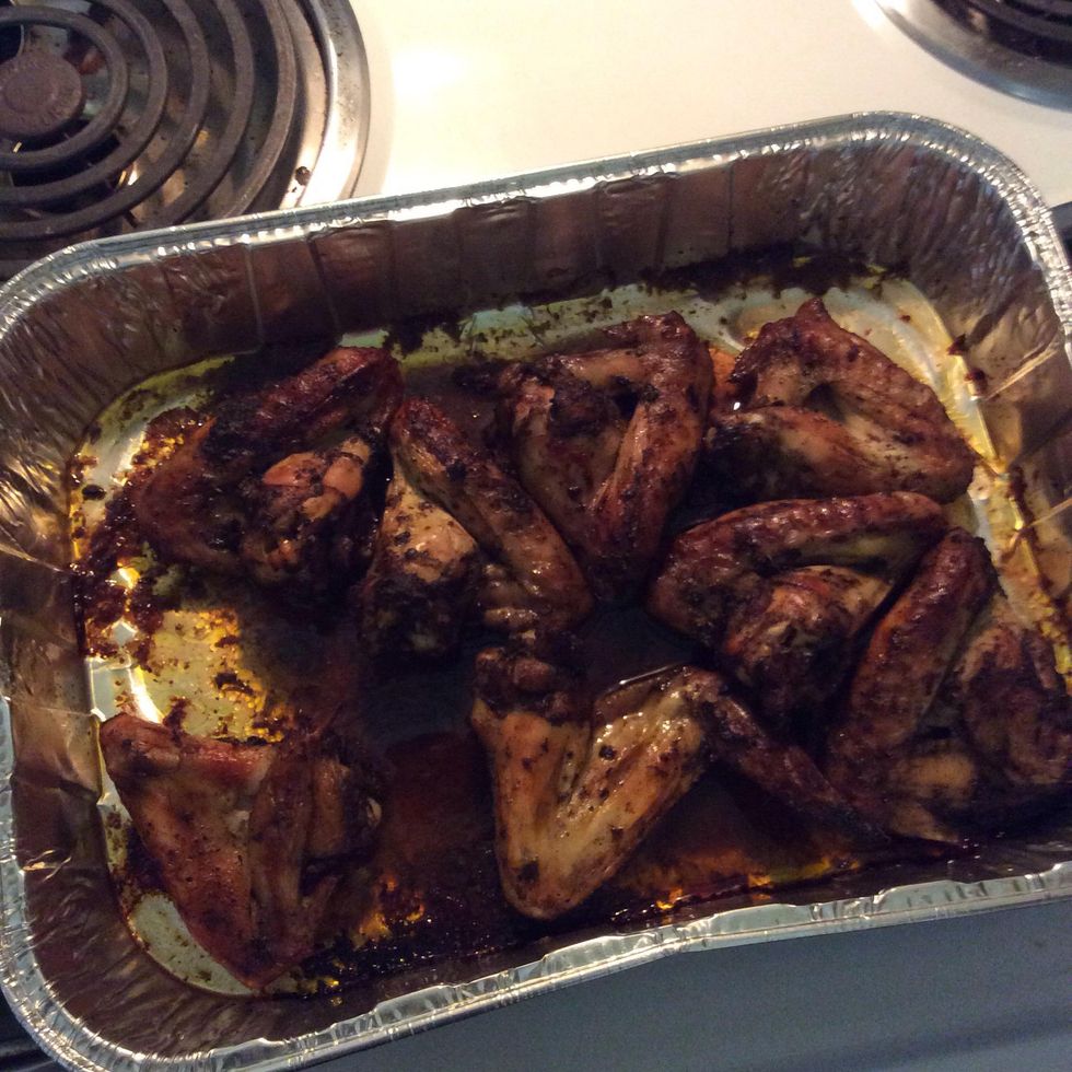 After you're done cleaning you're chicken, put gloves on and rub the jerk seasoning on the chicken, make sure the seasoning is everywhere and place it in a pan