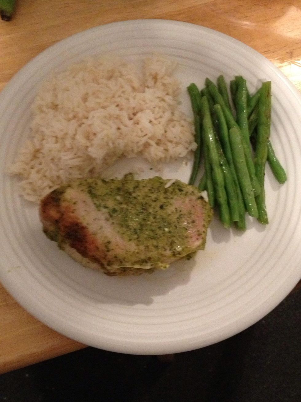 Chop and drop all seasonings ,and vegetables with olive oils in 3 cup food processor. Blend till chopped fine . (any left over mix place on ziplock bag and freeze great on chicken and fish as well.)
