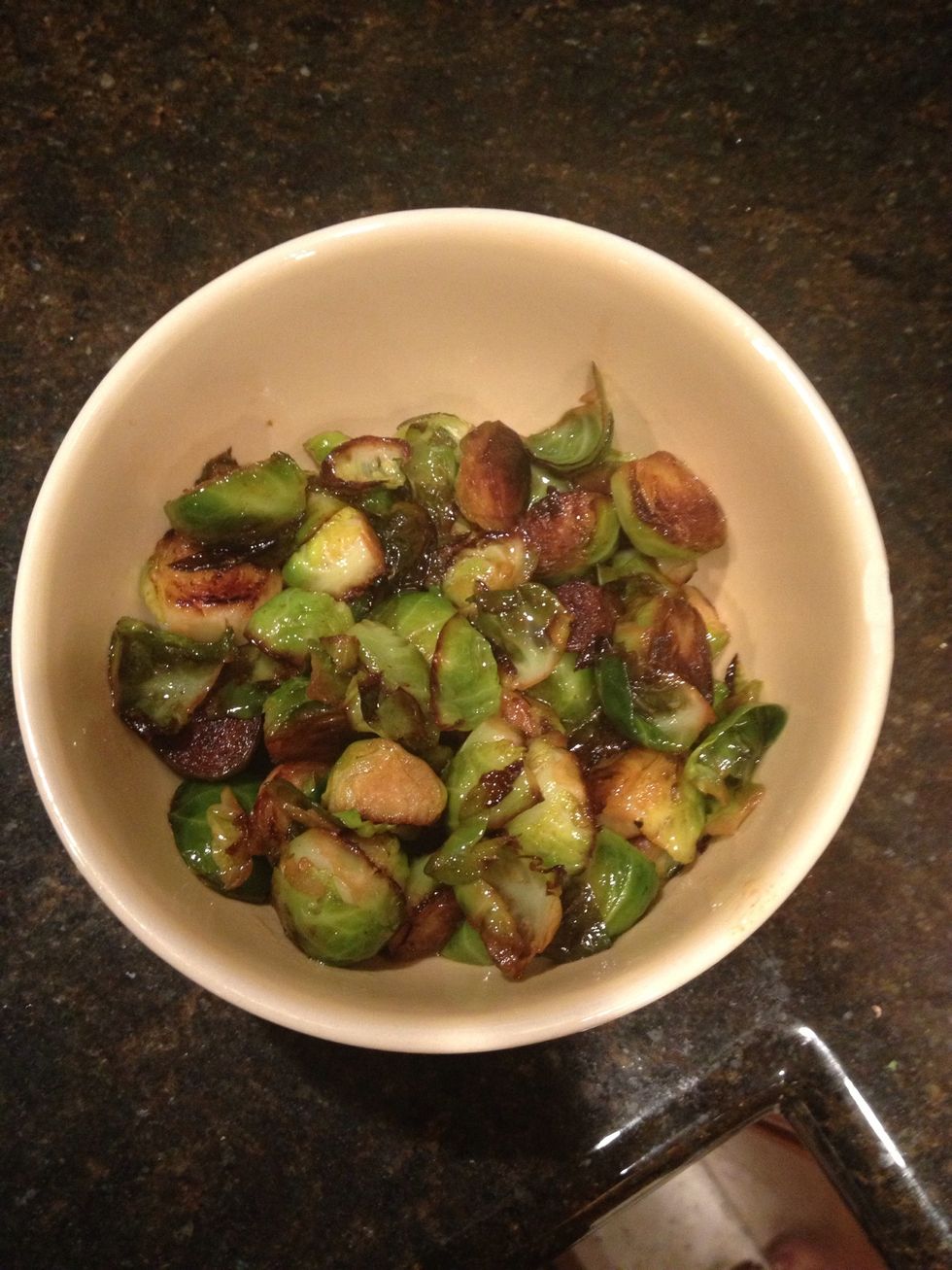 Place sprouts face down and cook until under side is golden brown, then flip and let cook another 5 minutes.