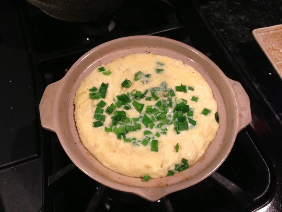 Wait about 5 minutes then add them scallions. Then put the lid back on.