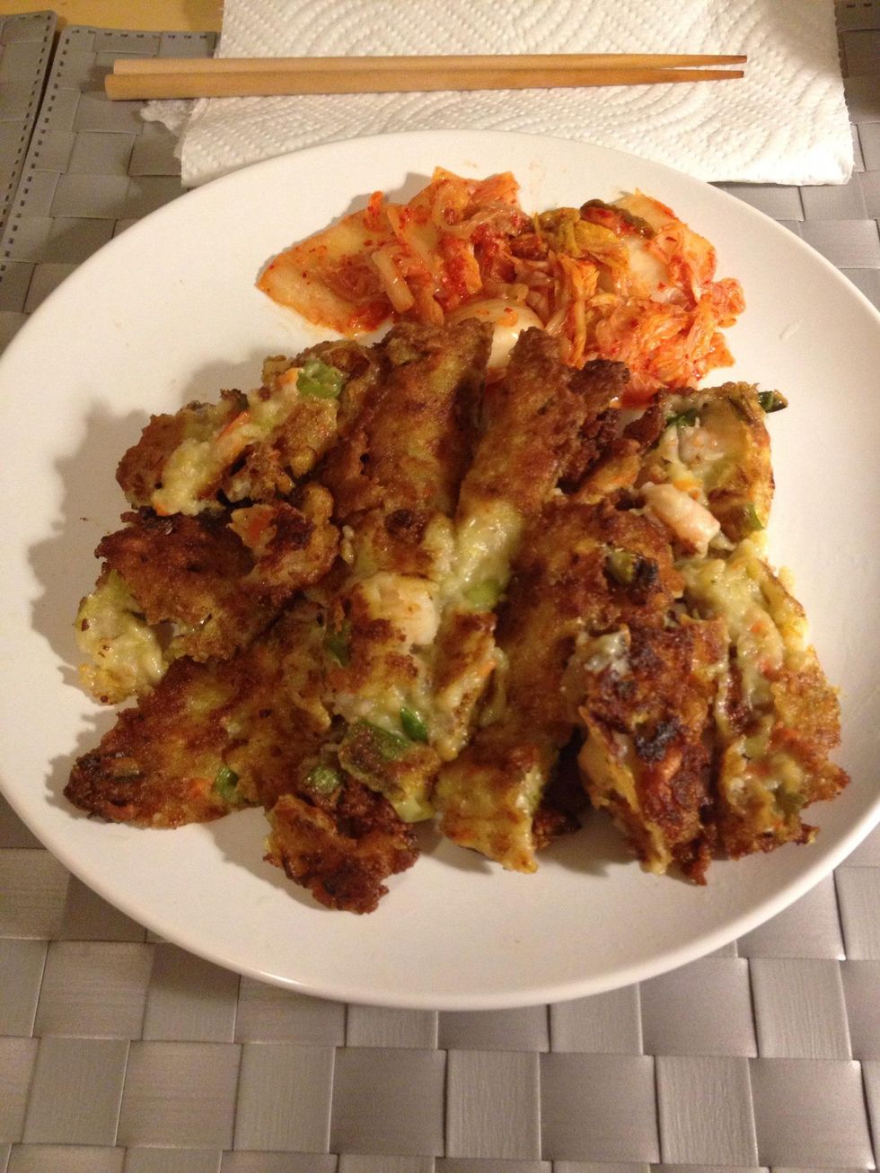 Cut into small piece and ready to go, this dish is taste really good with kimchi.