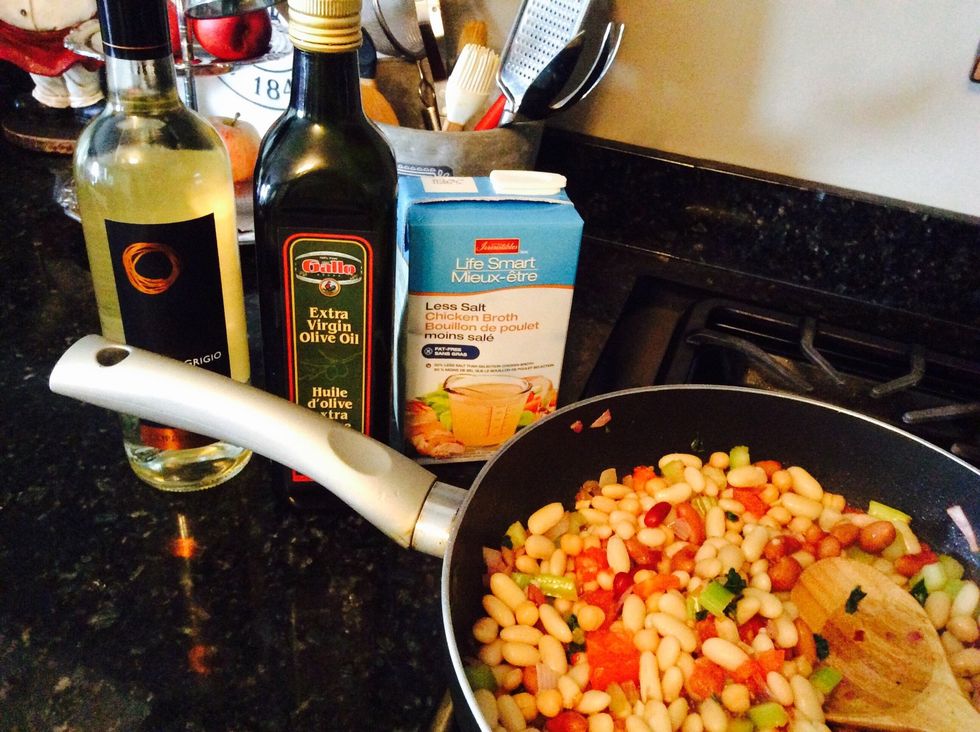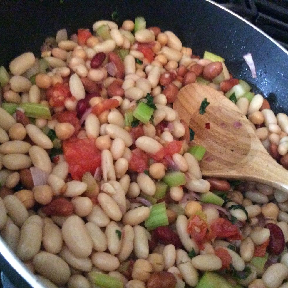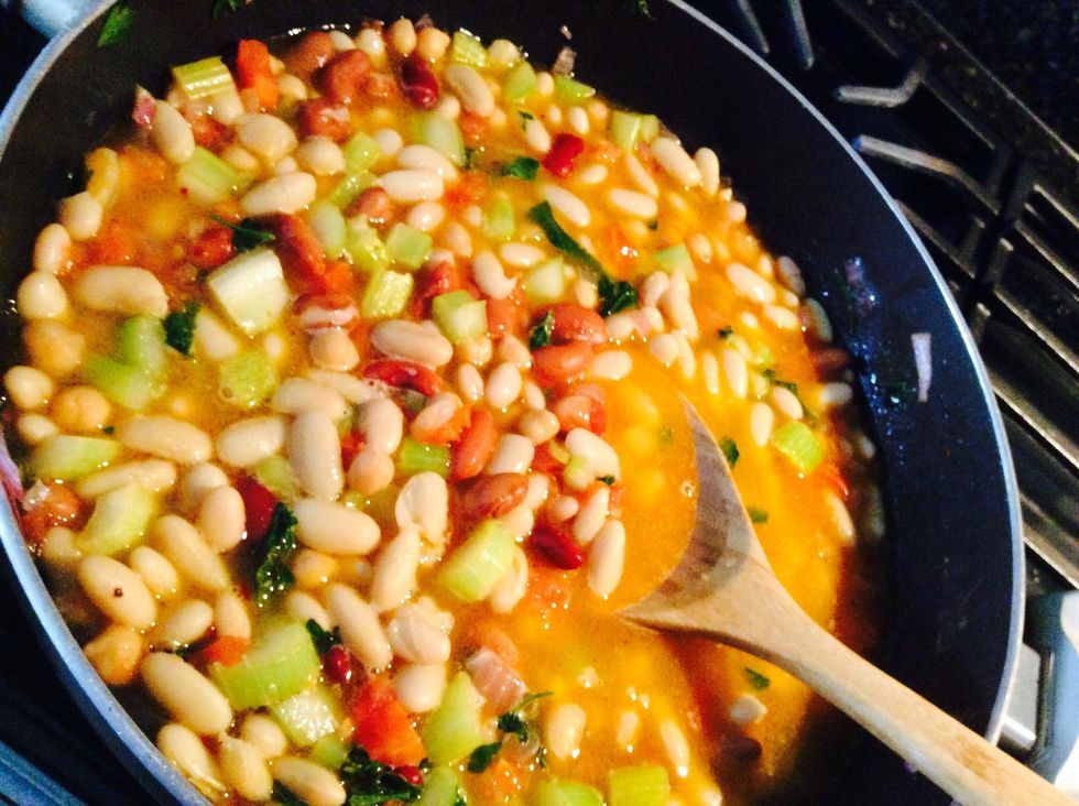 Let cook on Medium heat for about 10 mins. Add half cup of water while cooking at medium. Then cook another 20-30 mins on low or until beans are tender. Serve with a nice slice of Italian bread.👌🍞