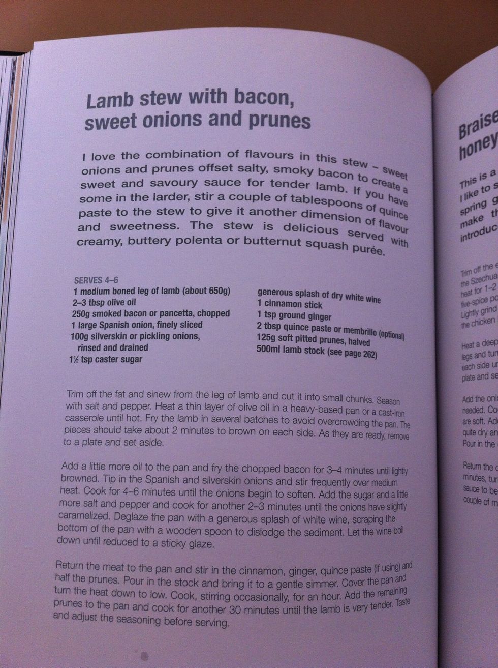 Set the lamb aside, put in chopped bacon and onions, till onions start to soften, splash some white wine, stir and let the wine boil down until reduced to a sticky glaze