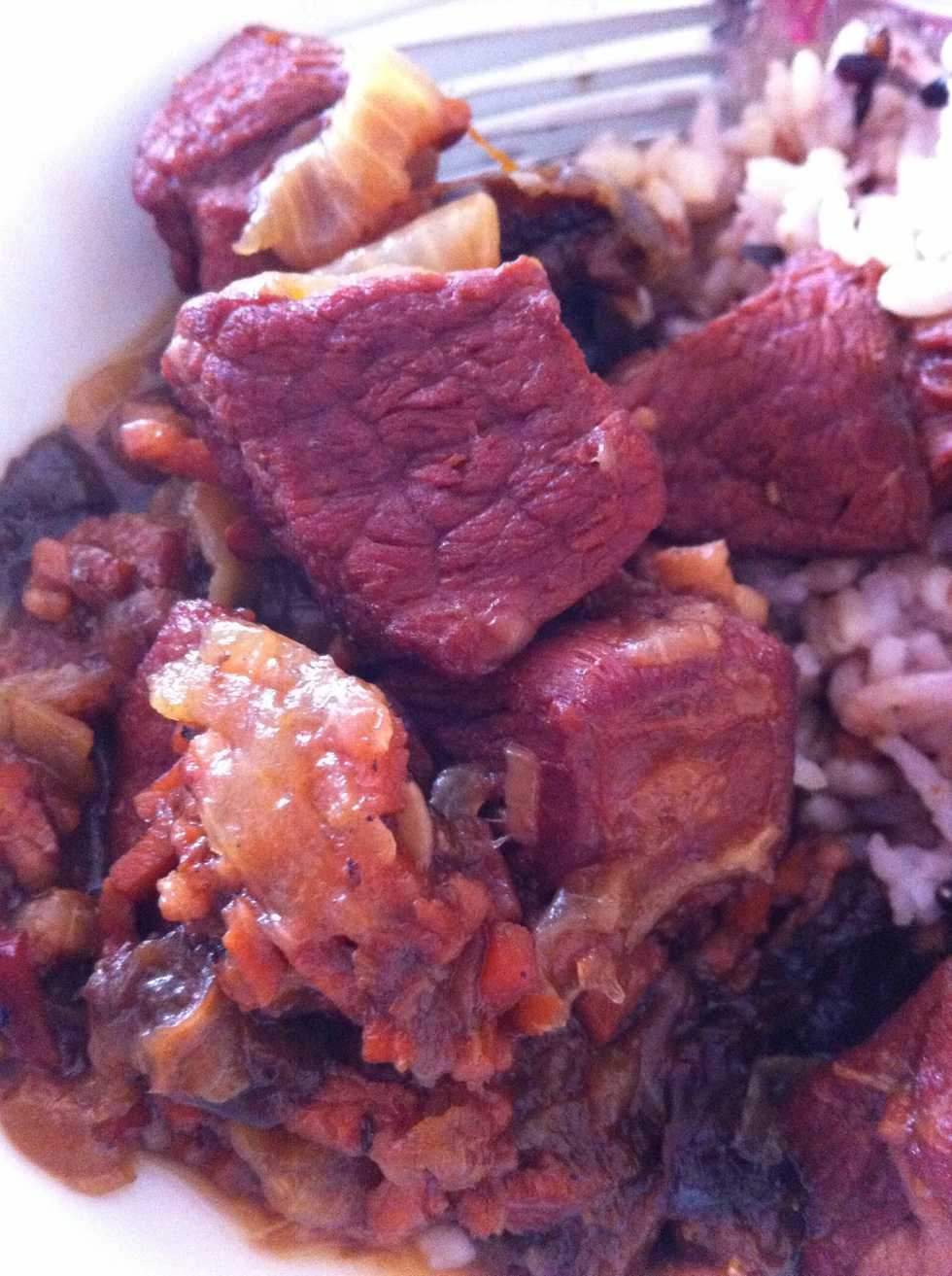 Add the rest of the prunes in after an hour, then cook for another half an hour, stir occasionally. Done!