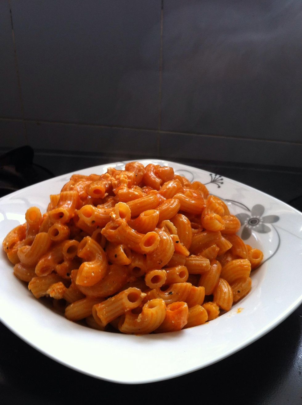 You need Macaroni , cheese I like Kiri cheese , garlic , tomato pure black pepper and saltAdd oil , garlic and black pepperThen add tomato ,macaroni and cheese don't forget the salt :)Add boiling waterready to eat ...it's easy , right ? :)
