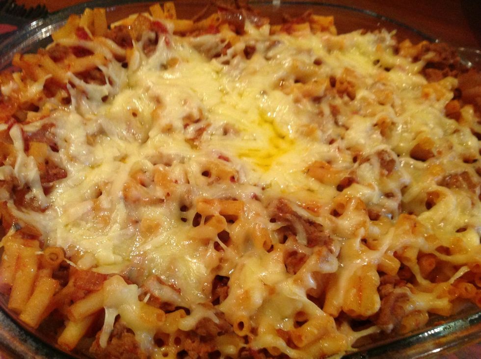 Add grated cheese on top and bake for 20 minutes at 180 degrees Celsius or 350 degrees Fahrenheit