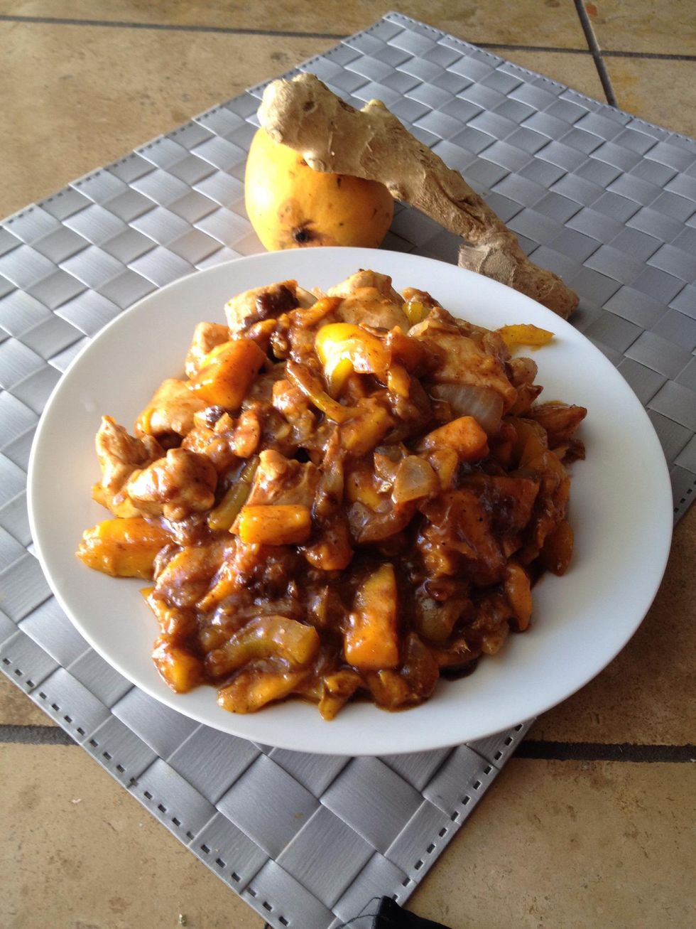 Yummy sweet and spicy mango chicken! Serve on top of rice, this is good for two serving!
