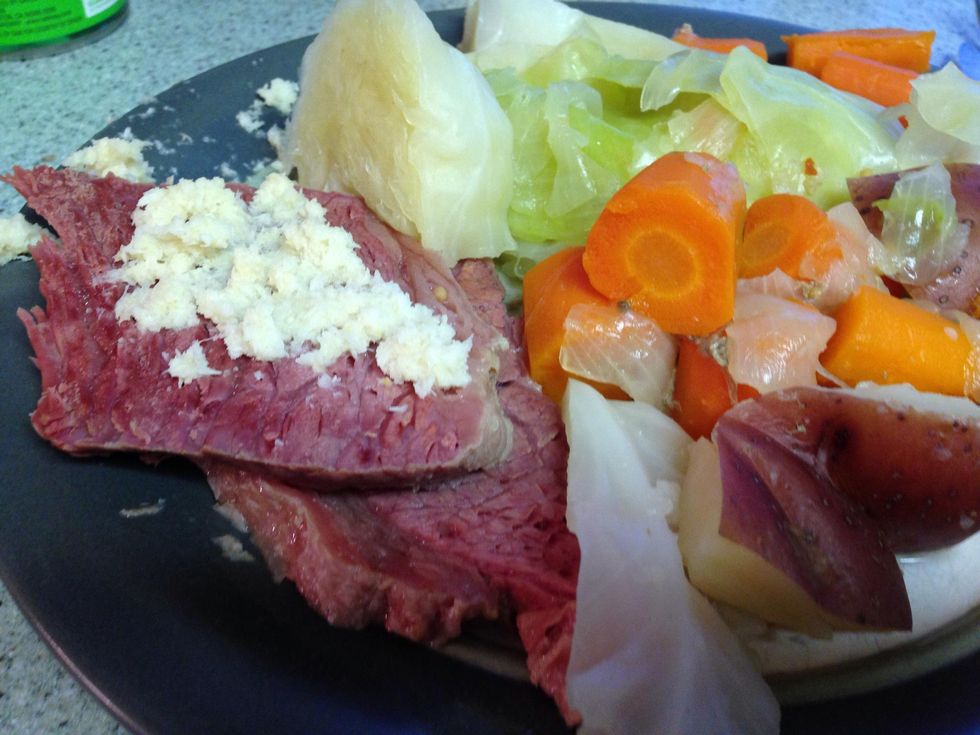 Serve with lots and lots of fresh horseradish. This is not enough. I need more. Enjoy! Happy St Paddy's Day!