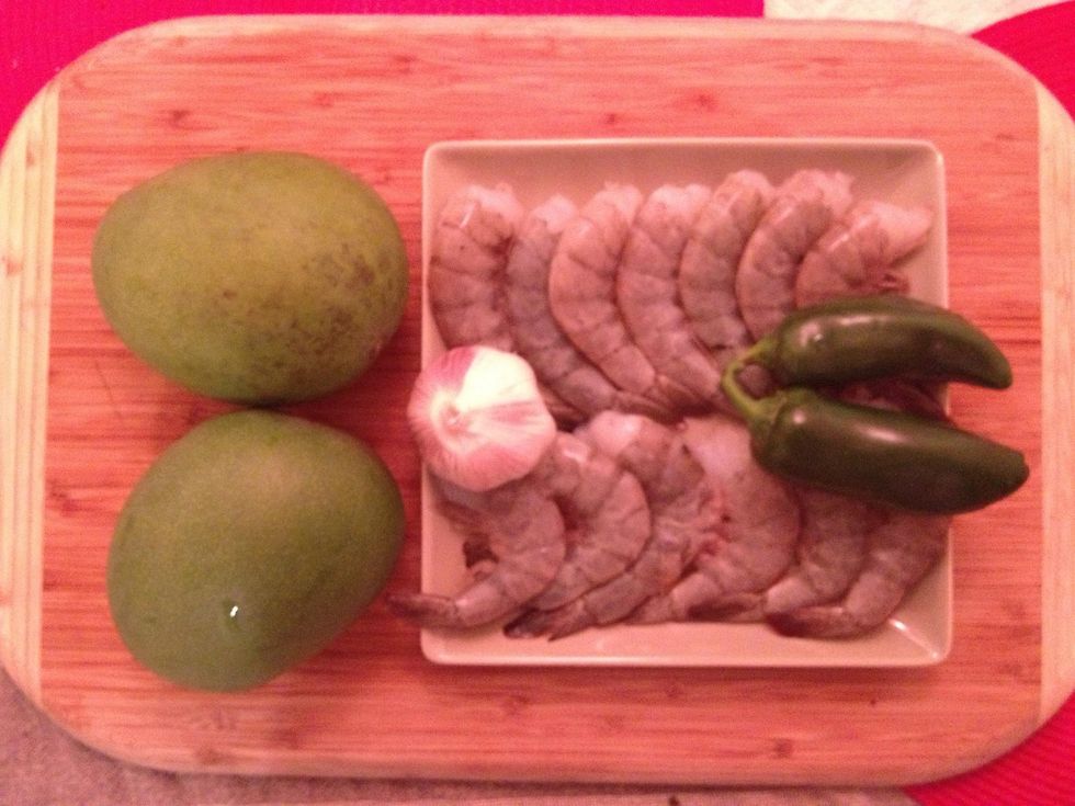 Keep this mix of mangoes,garlic and jalapeño aside while you cook the shrimps
