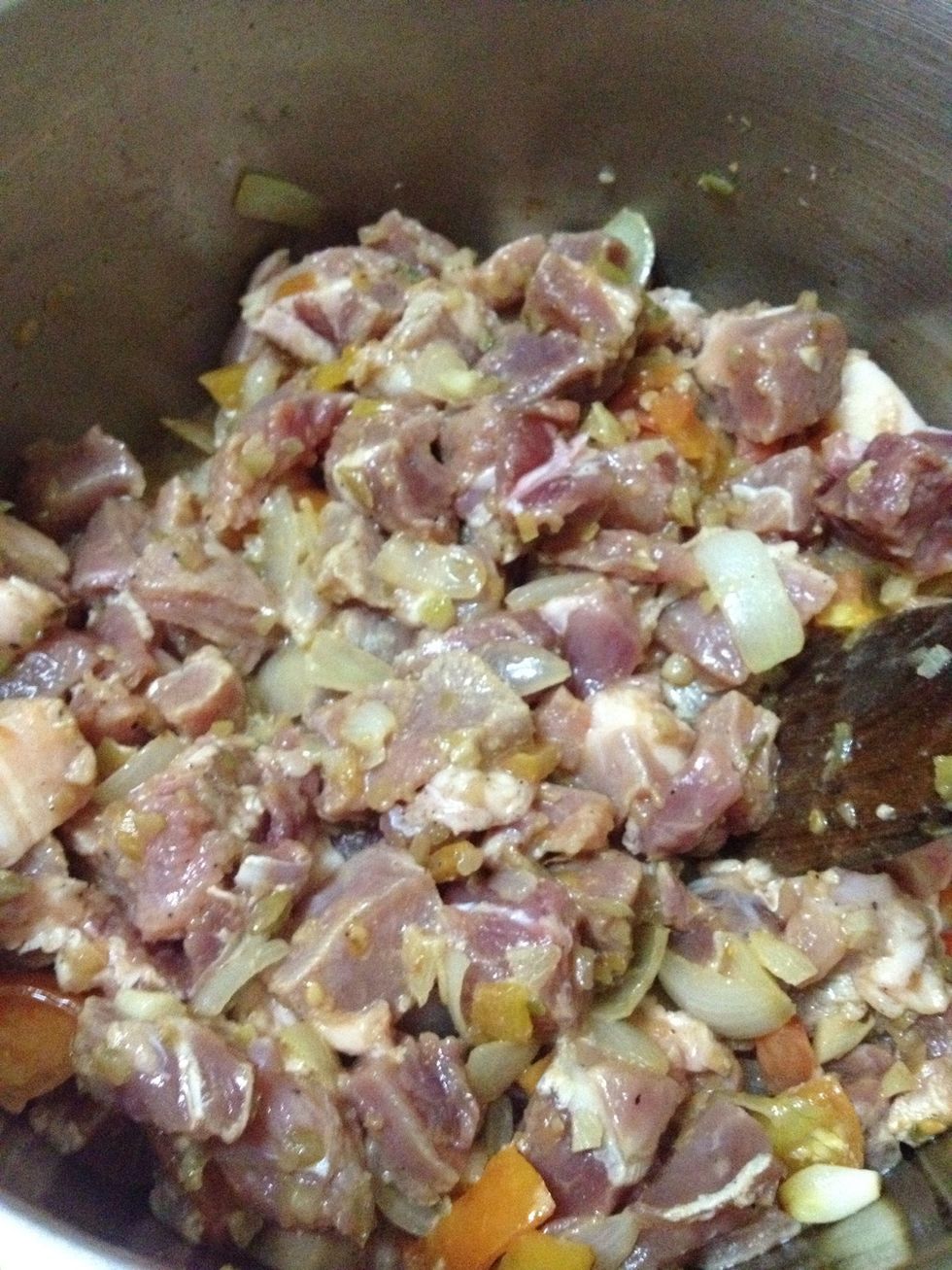 Add the marinated pork