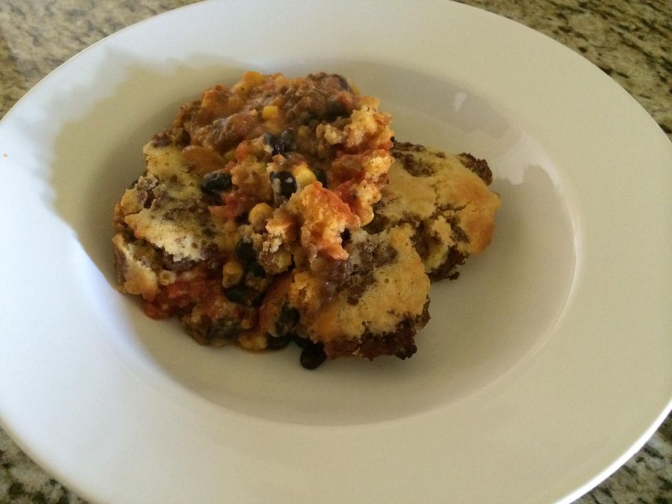 Mix 2 sweet yellow corn bread mixes with two eggs and 1cup of milk. Whisk till blended and spread over top.