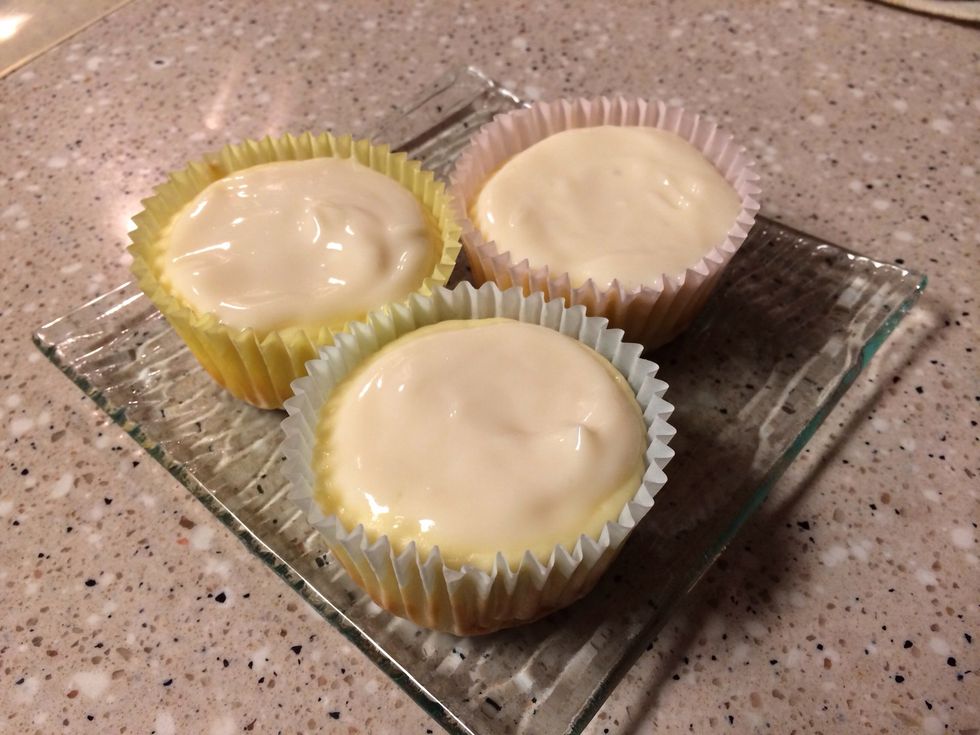 While cheesecakes are cooling, make the sour cream topping. Combine sour cream, sugar, and vanilla extract