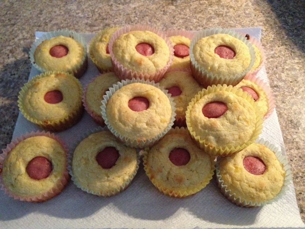 Serve with ketchup and mustard or your favorite topping. Enjoy! Yields 16 regular muffins or 24 mini muffins.