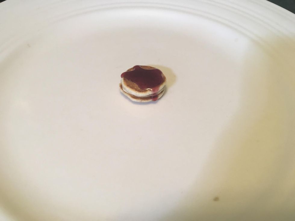 I used 1/4 teaspoon to get this size, it's about as big as a quarter. Put the heat on mediumWhen it's sort of bulky and not sizzling anymore, flip it with any kind of knife.Yay!Now you're done.I used this kind of syrup. It tastes amazing!