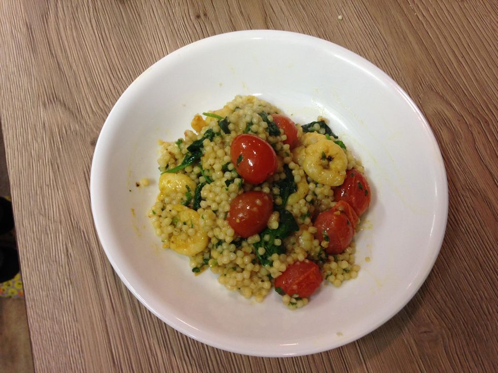 Marinate your prawns with olive oil and Moroccan spice let them sit while you cut up Parsley spring onions and Garlic