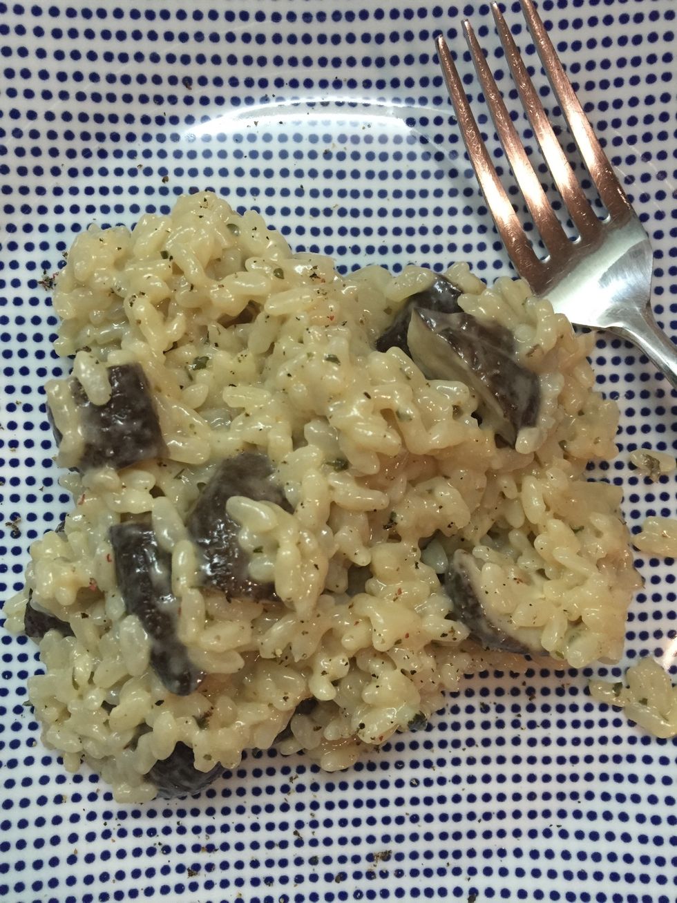 After you have cooked the risotto in the wine for a while, add the mushrooms.
