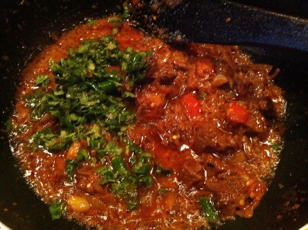 now add oil and start cooking.. when all its water is evaporated then continue cooking with addition of smallll amount of water intermittently when u think it's necessary.. cook for about 15 min