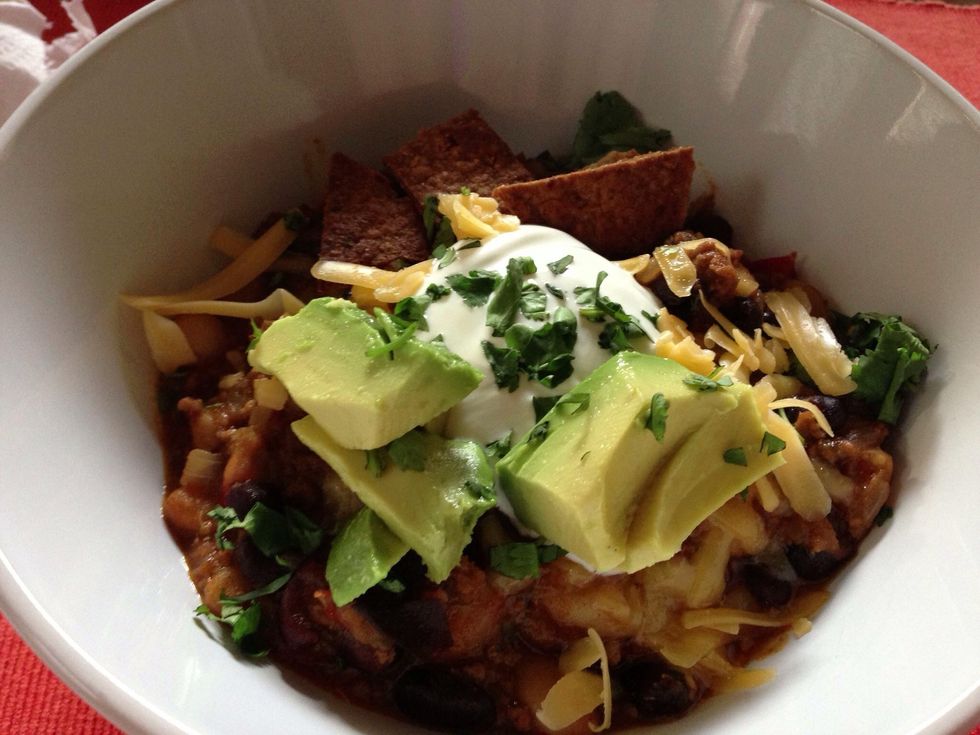 Chili is dangerous territory. People get fanatical about the word. I'm no chili expert. I know true verde is beanless; I know I use unconventional spices. This just tastes good, so enjoy!