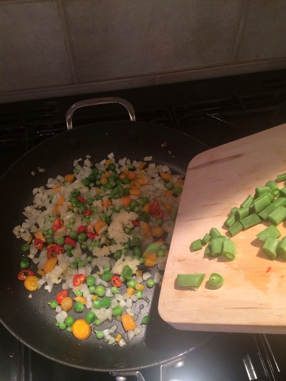 Push veg to side if pan add little more coconut oil or butter of no coconut