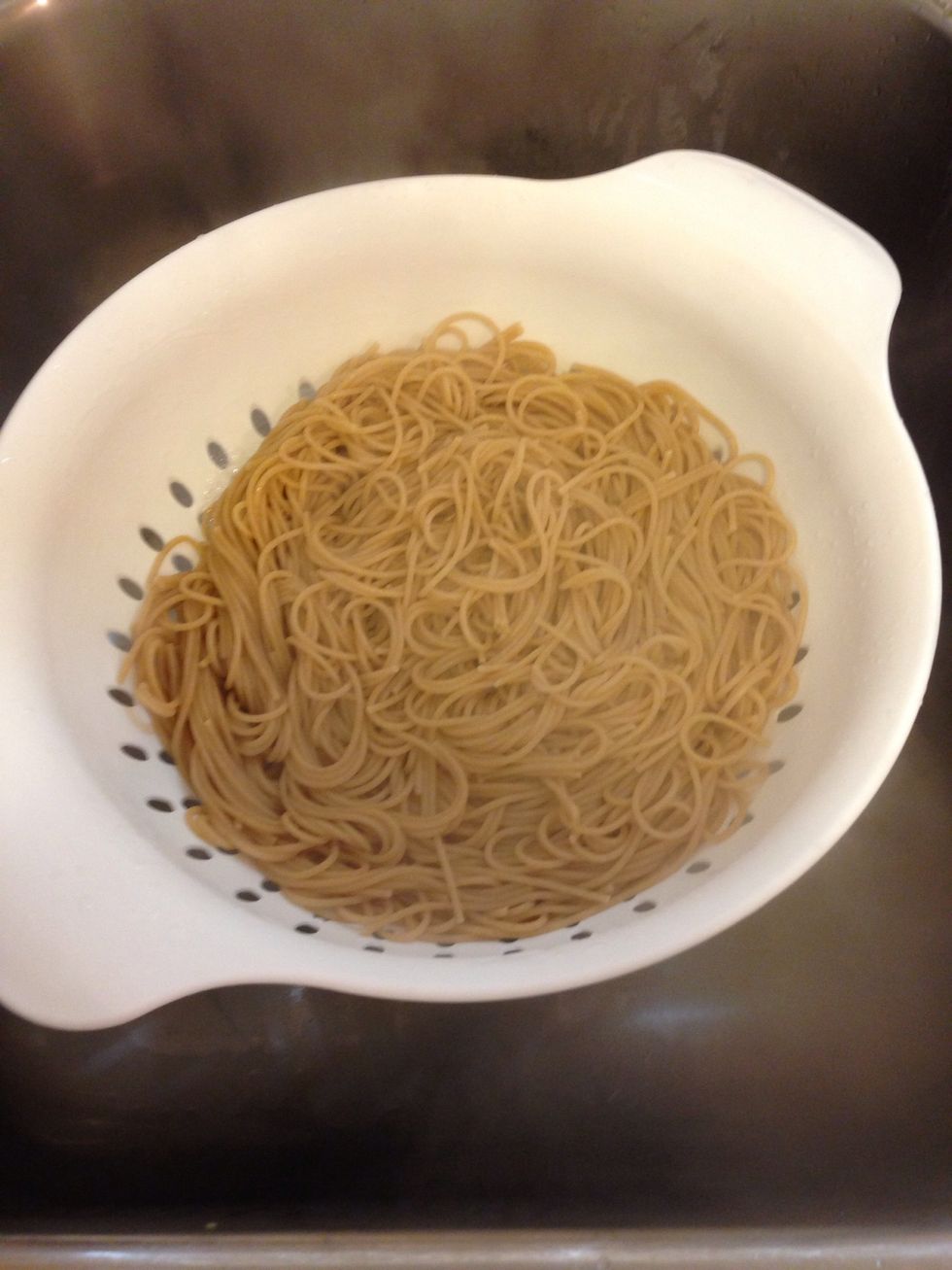 Once boiling add pasta and let cook, I'm using whole wheat so 11 minutes and good to go