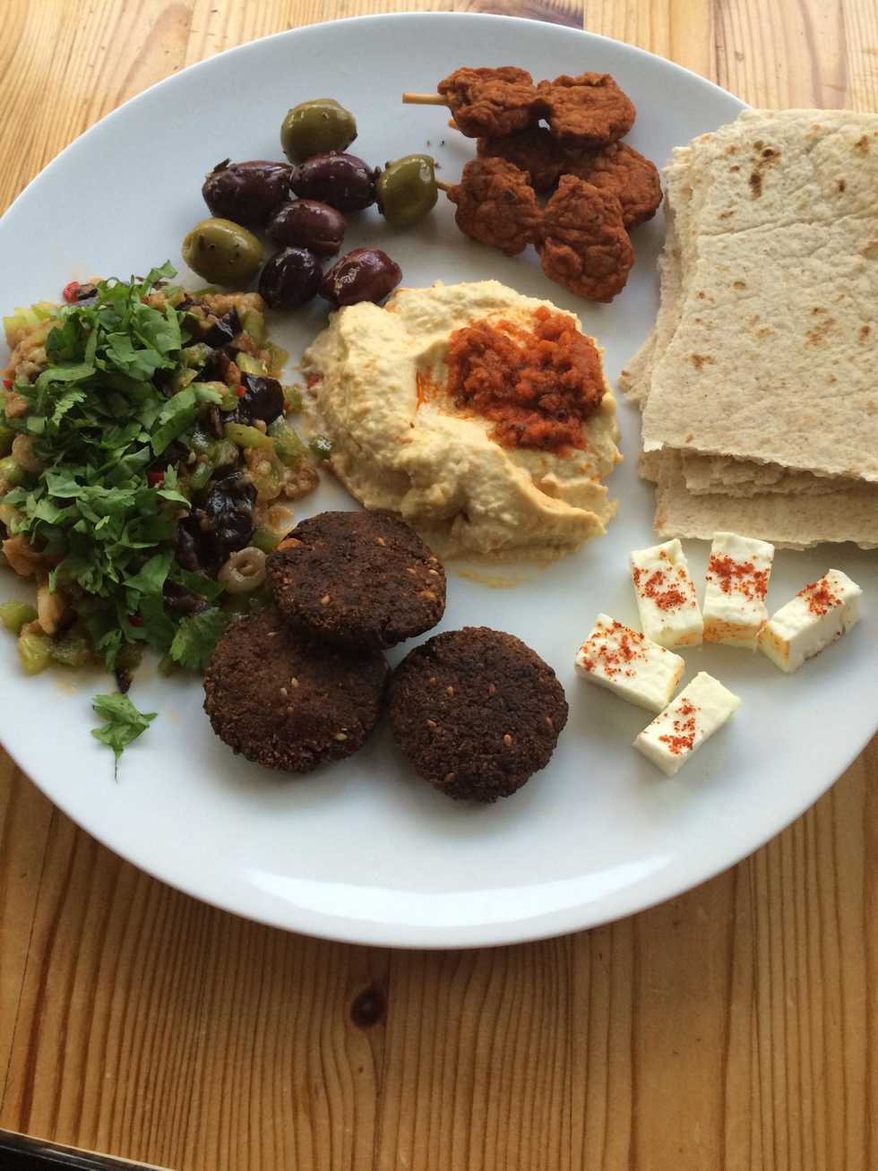 Serve it as Arabic meza. I have humous, olives, falafel, feta cheese & kubus! 😋😋