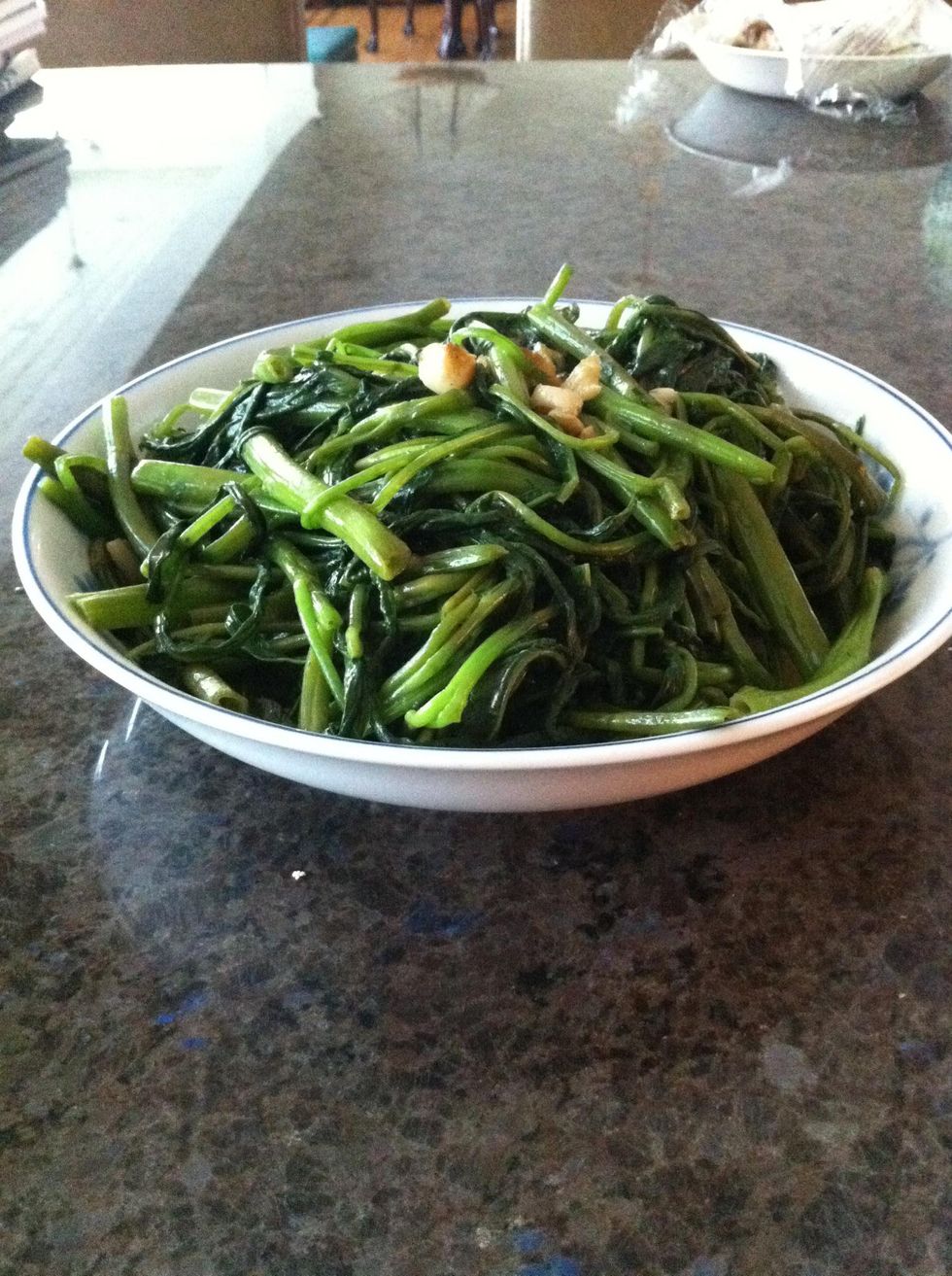 Wash and strain the water spinach