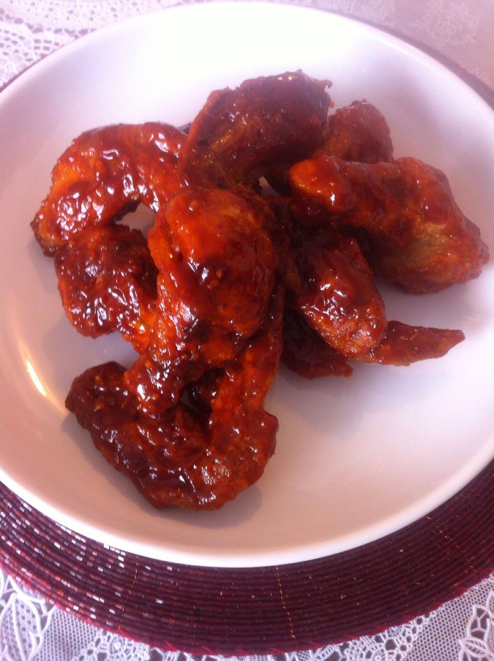 Sweet spicy hot wings are ready..that sweet soya sauce balance the spicy sriracha. Enjoy!!