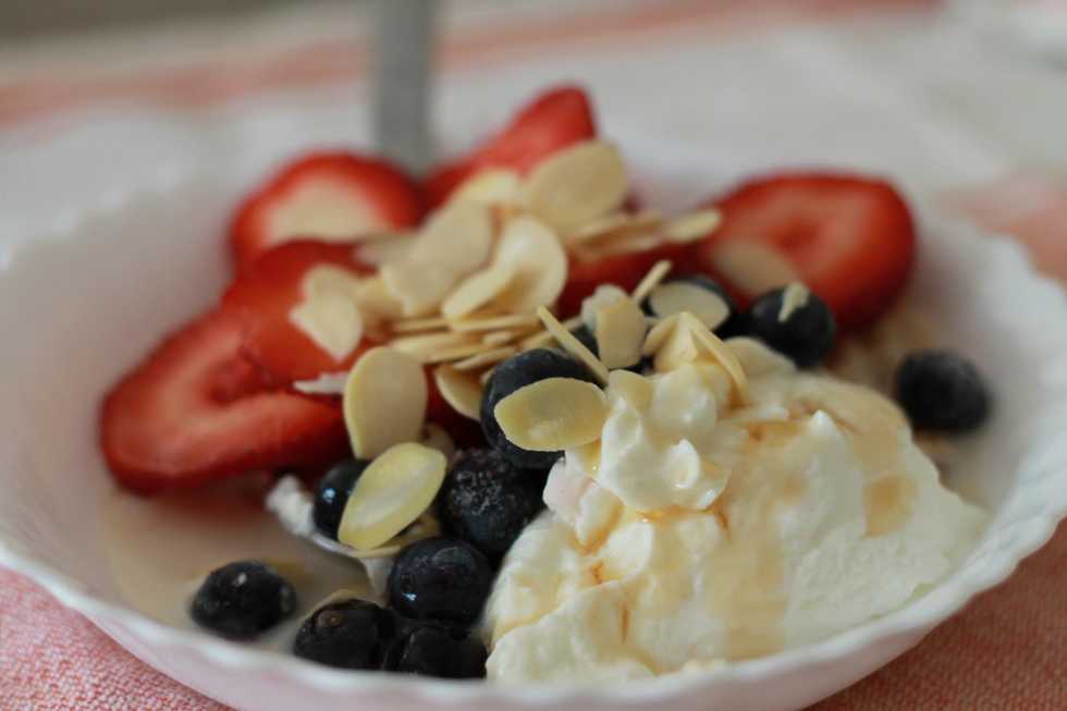 Add yogurt, berries and any other fruit you like.