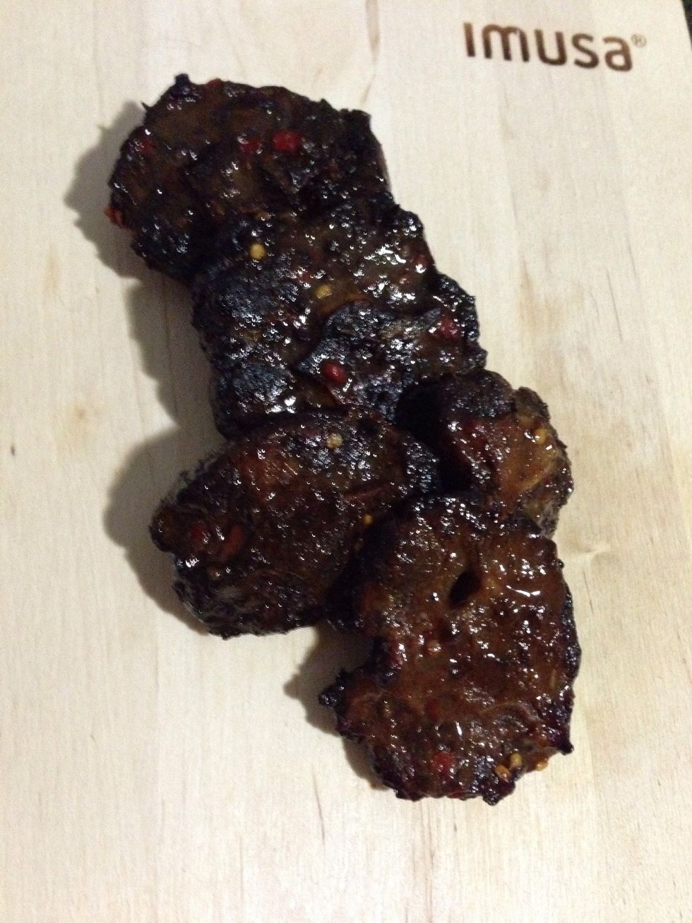Set your ox tail in a circle on your grill just like this. Then put the lid on top and let it cook. Based ur oxtail every 15min. For an hour Then turn over and repeat base for another hour.