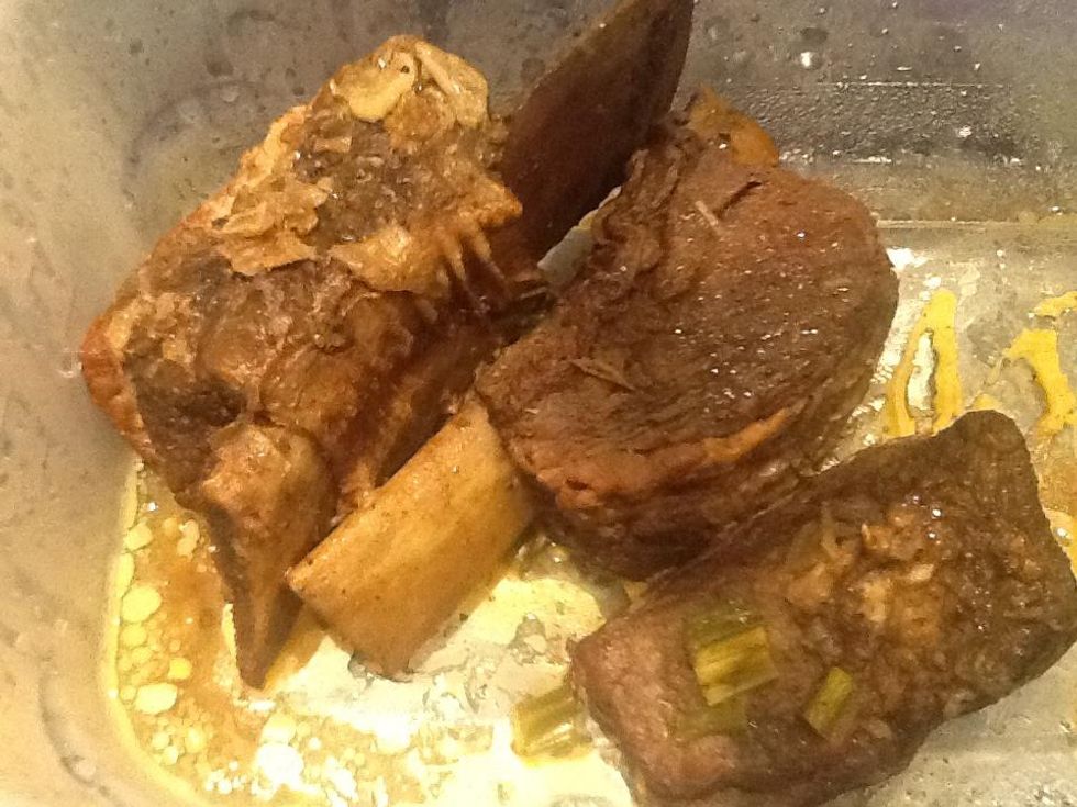 Brown short ribs in coconut oil, add to crock pot. I had seven ribs. Salt and pepper to taste.