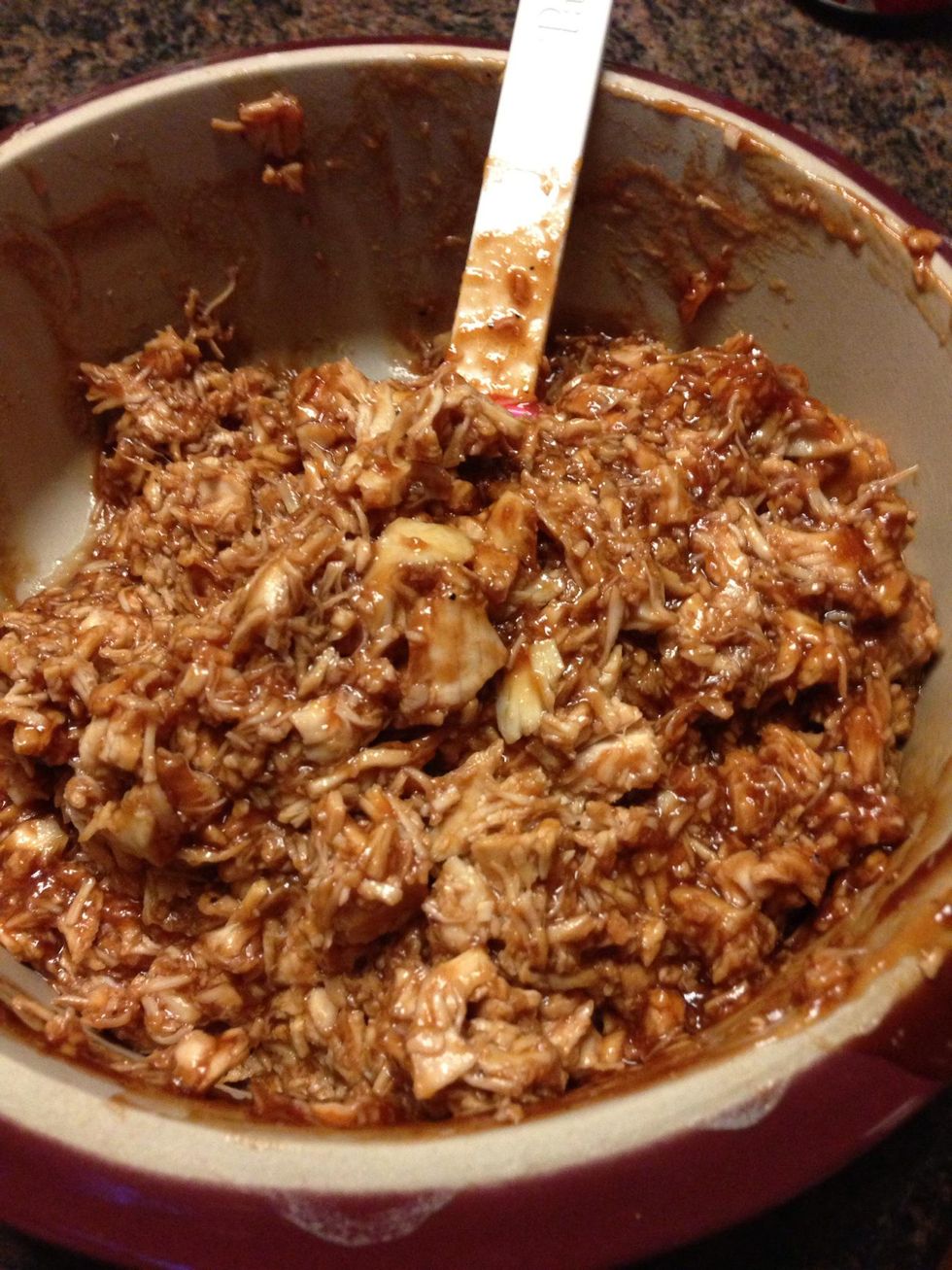 Chop chicken with your Pampered Chef salad choppers! Chop til fine enough for you.