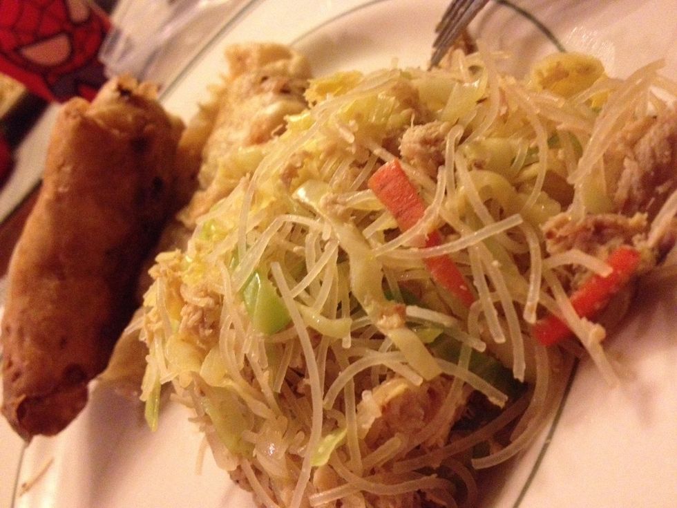 Remove rice stick noodles from package & soak in warm water until soft.