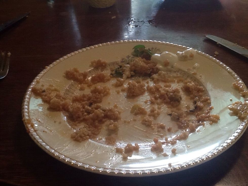 While chicken is cooking lay out your tabbouleh on the plate with Greek yogurt.