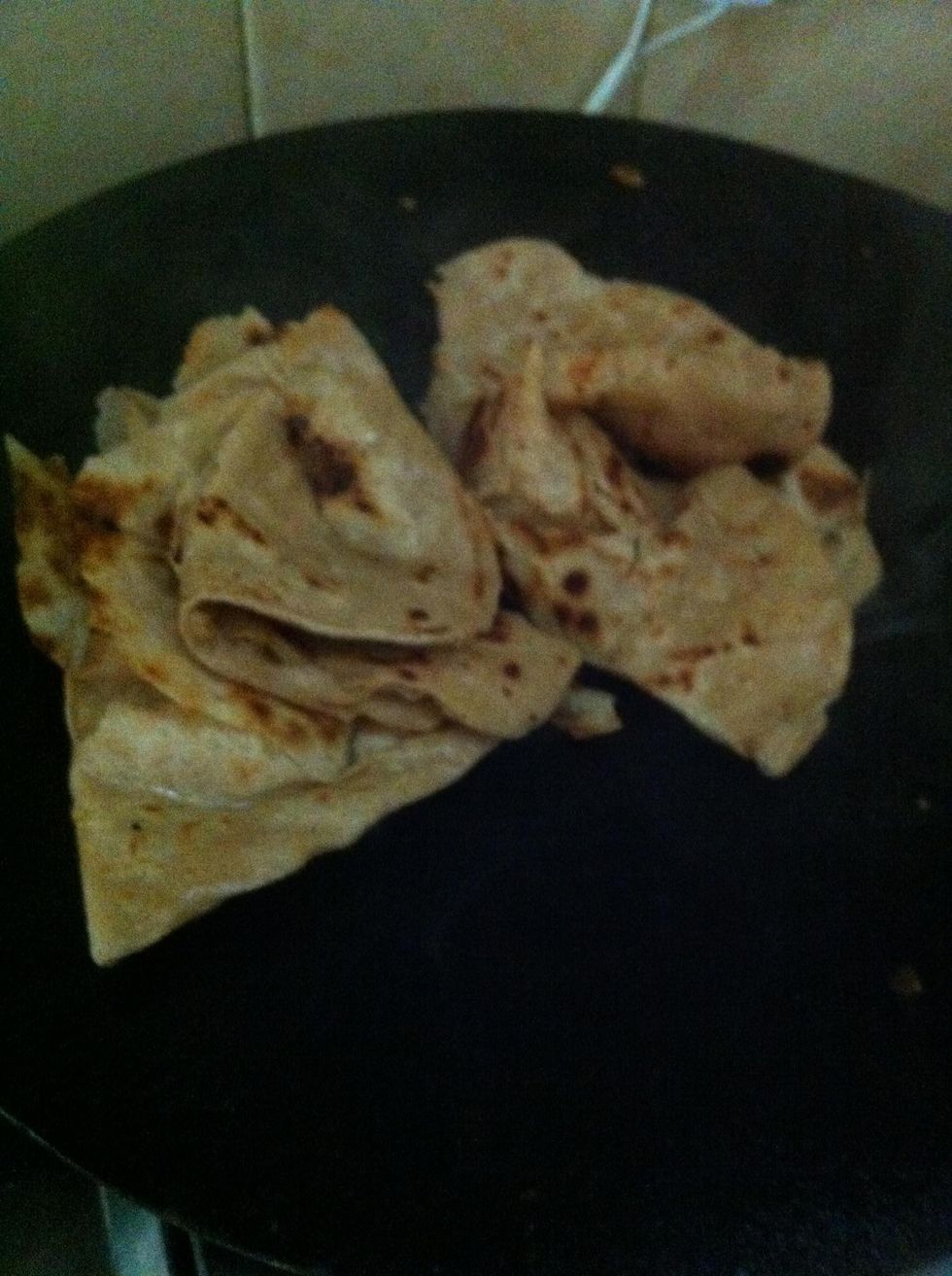 Make ballPerfectMake it thinRoll itPut some oilSpreadFoldAgainAgainPerfect foldGoodRollThinPut it on hot panCookCan make two at a timePut some gheeCook till brown12