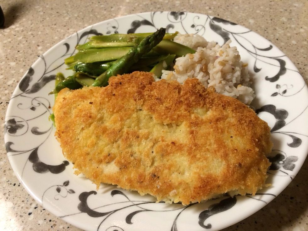 Panko (or breadcrumbs) and Parmesan cheese...in another plate