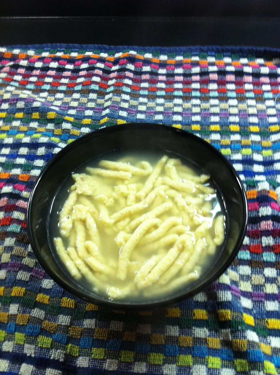 First al all gather what you need: egg (1 per person), flour, parmesan, grated bread, broth, nutmeg