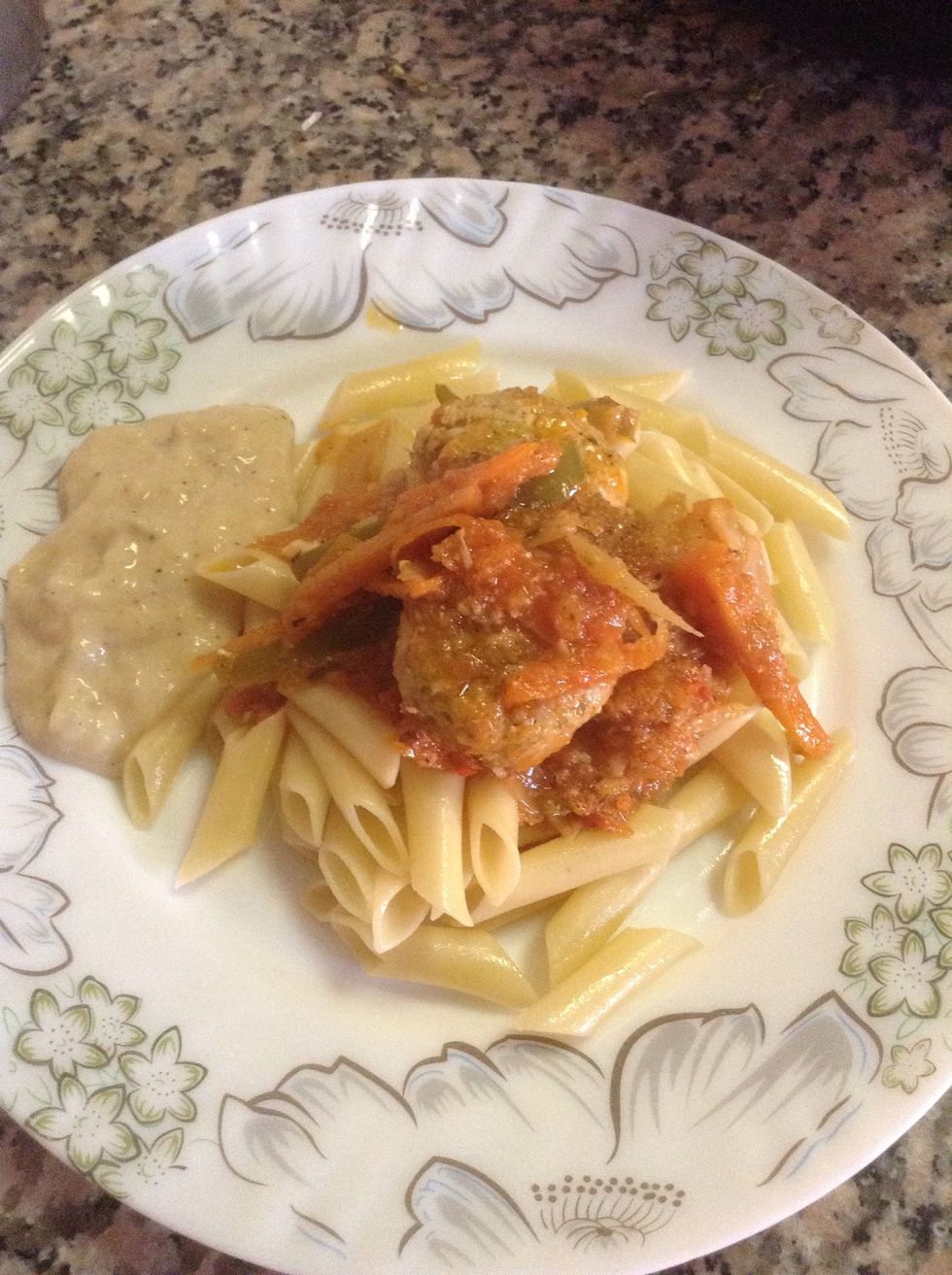 Place the pasta and put meatballs gravy and serve hot. :)
