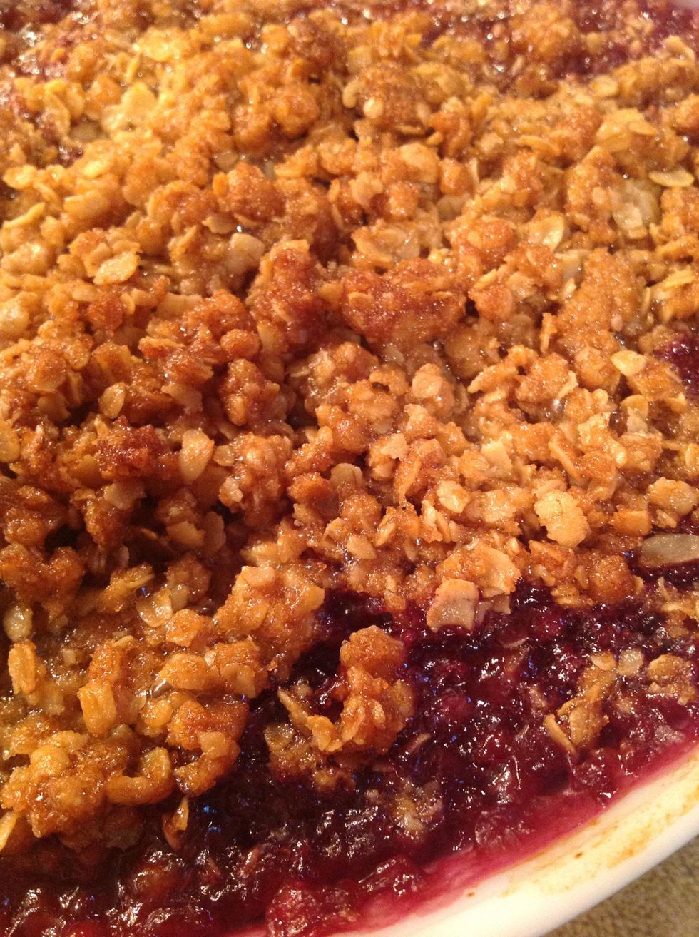 Add crumble mixture on top. Bake for 40-45 min at 375F.