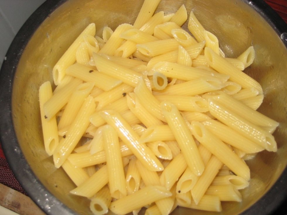 Cool the pasta under running water to stop the cooking process.
