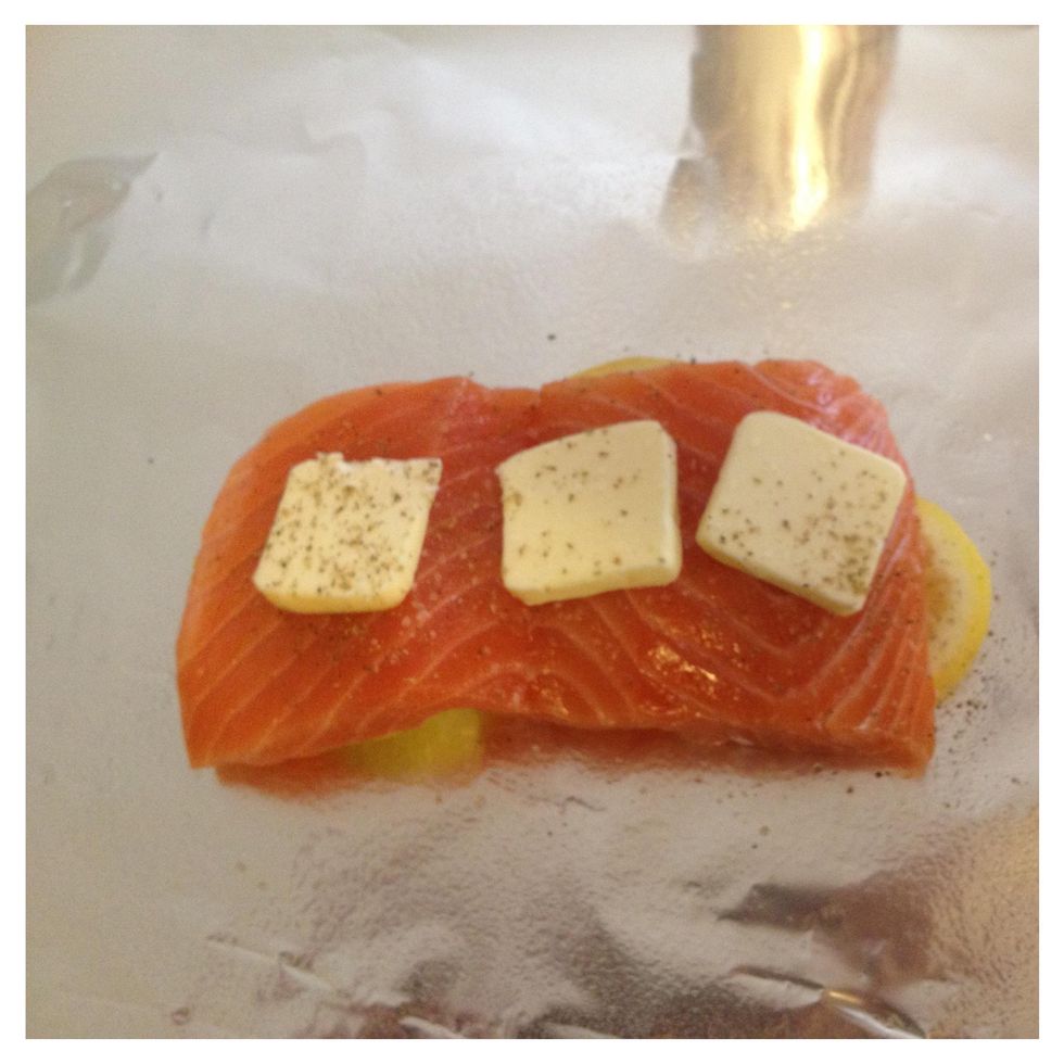 Lay salmon filet on lemons.