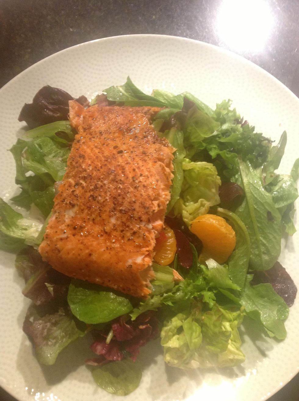 Leave the skin on! It adds flavor and it is nature's way of telling you when the fish is perfectly cooked. The salmon will literally glide off of the skin when done. Ok now we have the salmon basics.