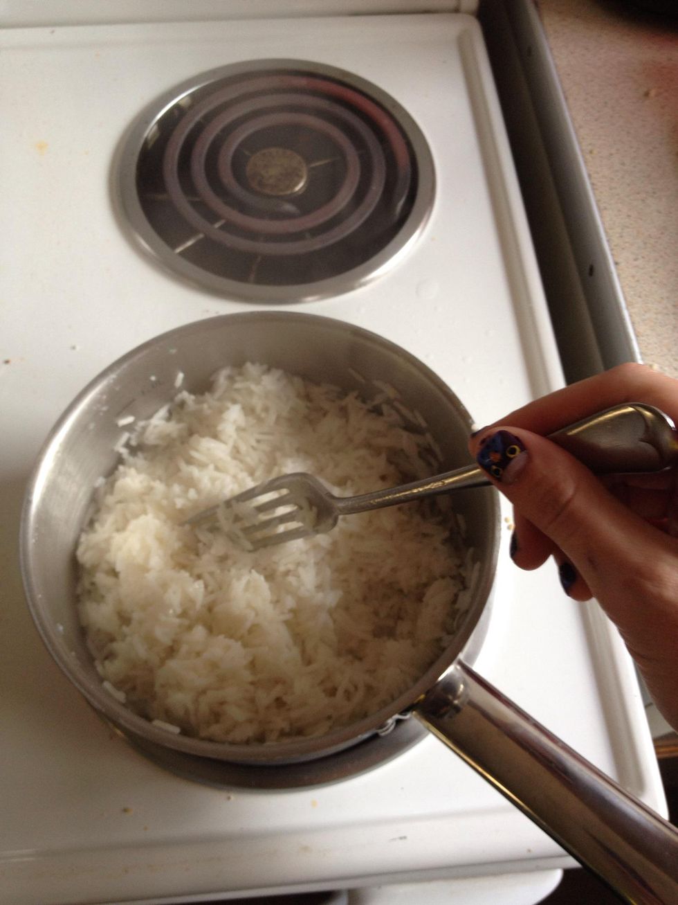 I use long grain or basmati for this but I guess most rice works as well. It can be done with any quantity see notes at end. This is for 2 people. :-)