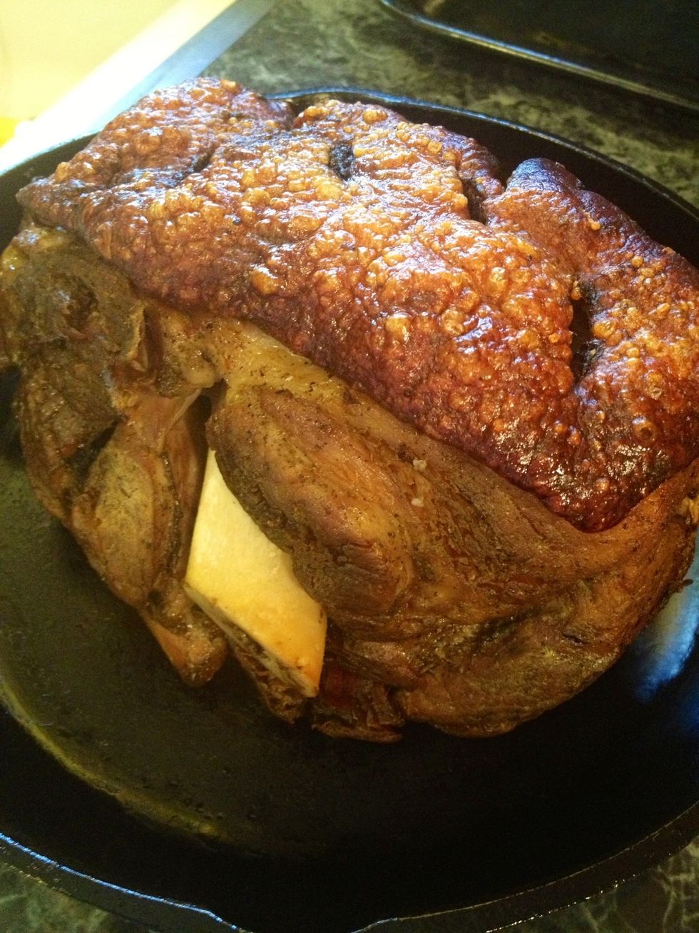 Leave the pork shoulder in there for about 35-40 minutes. When done take a step back and pat yourself in the back, you have now made a spanish pernil, dianas way. oh yeah,Will you look at that crust?