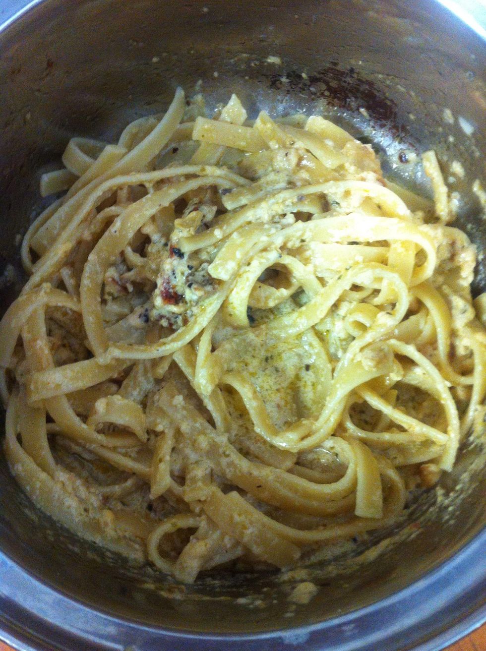 Add whipping cream and Sundried tomatoes..sorry I don't have any measurements I was just guessing on everything :)